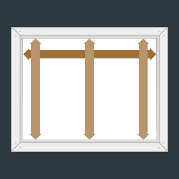 Il est très important de prendre la hauteur à trois endroits différents comme la figure-1 ci-bas et conserver la plus petite mesure. La toile alternée est fabriquée de façon à arriver à 1/8 de pouces du bas du cadrage en position intimité, et va relever un peu en position de jour qui aligne les voilages de façon à voir l`extérieur.